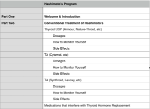 The Hashimoto’s program is a do-it-yourself program that takes you through a complete gut restoration program with targeted thyroid support. It teaches you to find your appropriate dose of medication (if you use medication) and how to monitor your symptoms, dosages and labs. It takes you through a comprehensive elimination diet specifically for those with autoimmune disease and runs through the entire gut restoration program that I have used with thousands of clients.